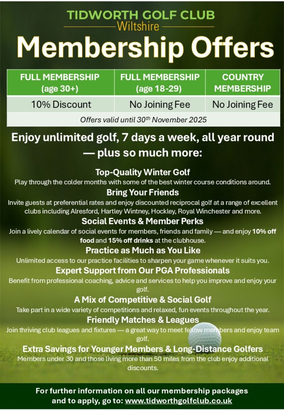 FURTHER INFORMATION COMING SOON Email us to register your interest at: admin@tidworthgolfclub.co.uk |